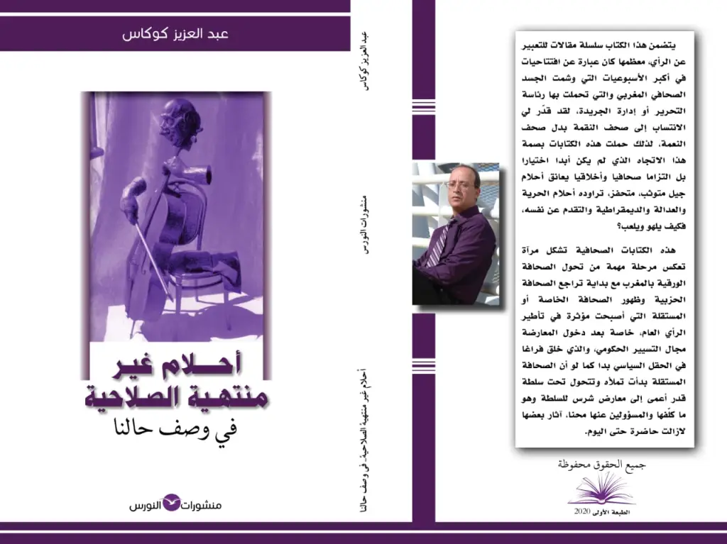 اكتشفت كتابات المبدع المغربي عبد العزيز كوكاس عبر جريدتي “الغد” و”الزمان” اللندنية، قبلها قرأت عنه أكثر مما قرأت له، حتى كانت ندوة بالمغرب نظمها مركز حرية الإعلام الذي كان يرأسه سعيد السلامي حول “الإعلام العربي والحق في الوصول على المعلومات” بالدار البيضاء، حيث قدر لي أن أنصت إلى مداخلة متميزة، سأكتشف بعدها أن الأمر يتعلق بالكاتب الصحافي المغربي عبد العزيز كوكاس، فنشأت بيننا ألفة غريبة، ظل مداوما على كتاباتي، وكلما زار الأردن كان يسأل عني وكنت أسعد بلقائه، حيث اكتشفت أنه يتحدث كما يكتب بلغة أنيقة وبلكنة مرحة حتى وهو يتحدث في مواضيع جارحة.. وحين حصلت على كتابه من صديق مشترك بيننا، شاب قاص فلسطيني، لم أترك الكتاب حتى كنت على حافة الفهرست، وقلت لا عيب فيه إلا قصره، رغم أن عدد صفحات “أحلام غير منتهية الصلاحية” يصل إلى 187 صفحة في طبعة أنيقة وذات جمالية إبداعية.